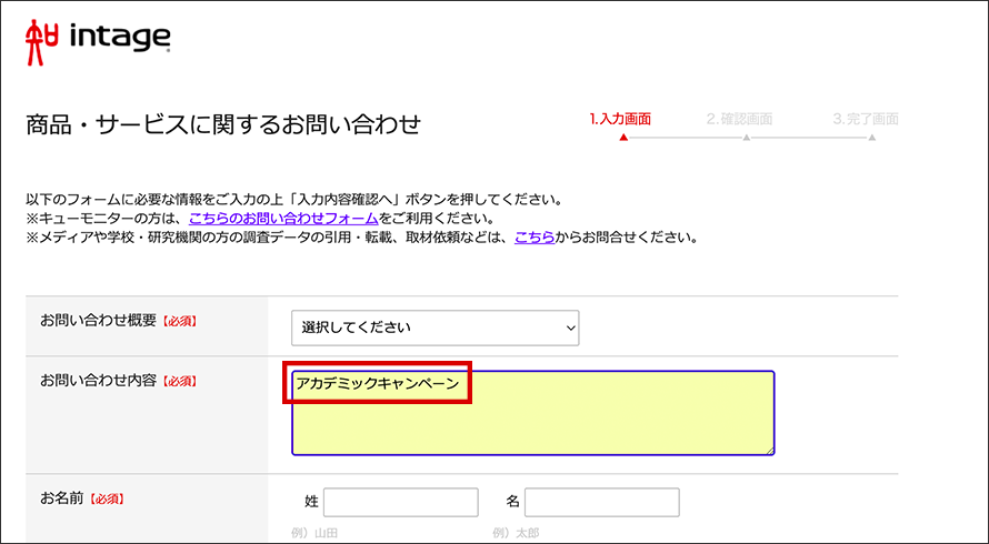 対象の方は、お申込み時の問合せ内容部分に「アカデミックキャンペーン」とご記載ください。