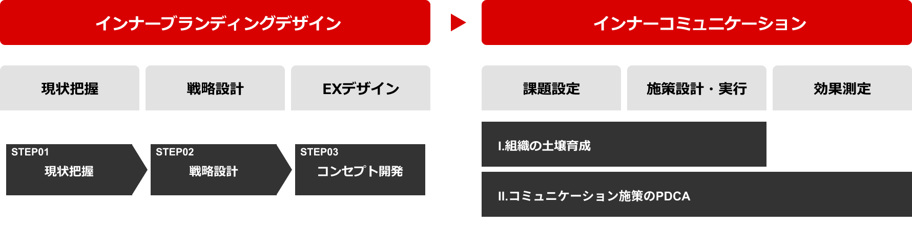 コンセプトに基づいたアイデアやメッセージを作り伝える「インナーコミュニケーション」をご用意しております。